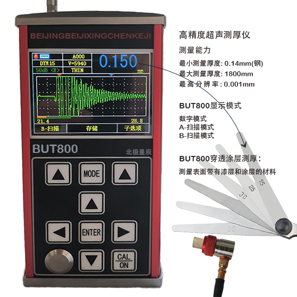 ● 测量范围宽,最小测量厚度0.11mm(钢),最大测量厚度1800mm;